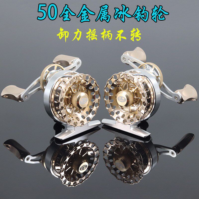 新款全金属冰钓轮筏钓轮50泄力微铅桥筏不锈钢耐腐蚀海钓筏冬装备