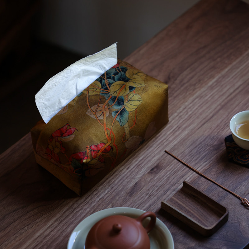 雅集手包纸巾收纳盒布艺中式桌面轻奢抽纸盒现代民宿茶室纸巾布套