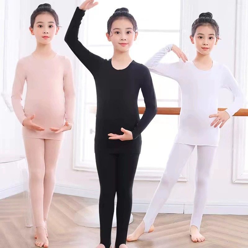 长袖舞蹈服儿童女童肉色打底衣套装春秋冬跳舞练功专用演出紧身衣