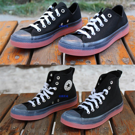 果冻水晶底CONVERSE匡威 CX透明底黑色男子帆布鞋168568C,167809