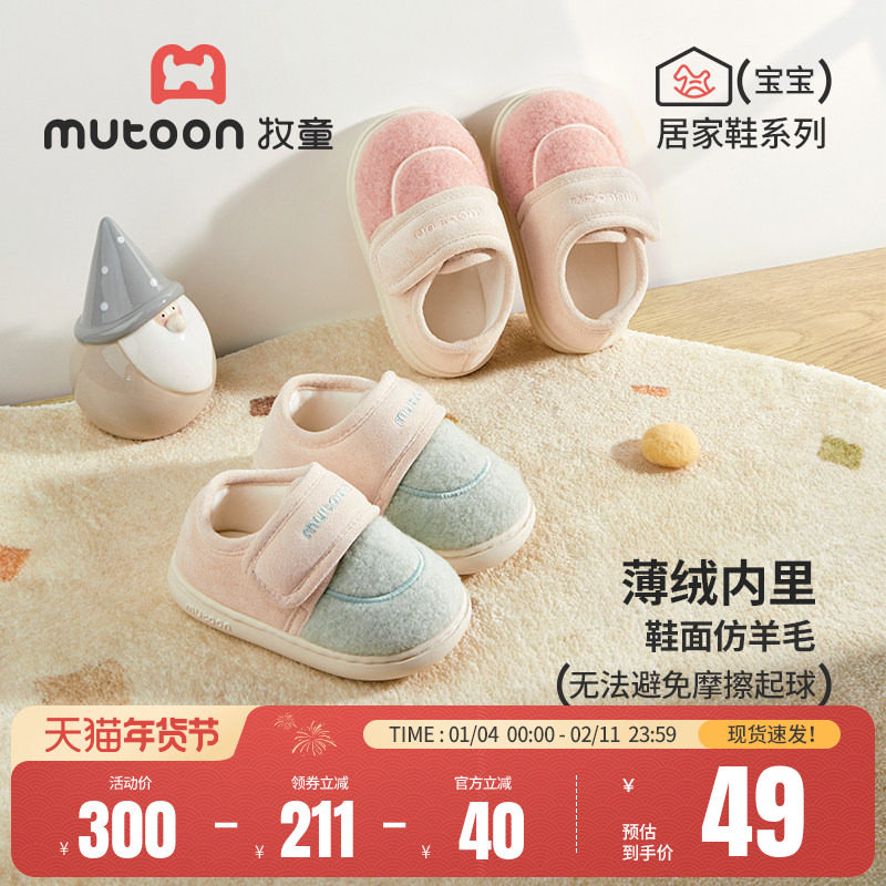 牧童小宝宝拖鞋2025秋冬新款薄绒棉拖鞋男儿童怀旧款包跟面包鞋女