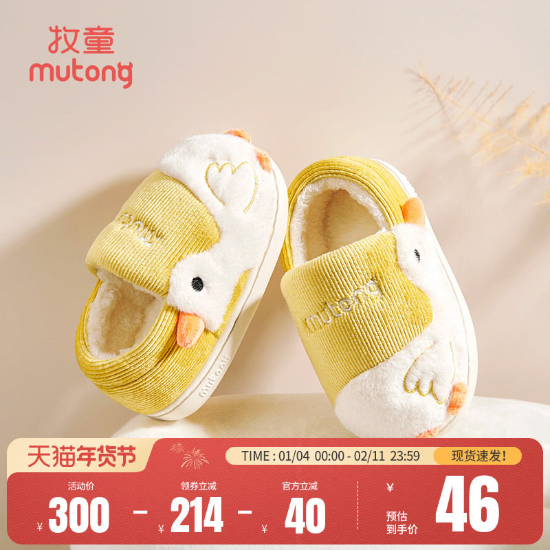 牧童宝宝室内拖鞋加绒保暖儿童家居鞋男童冬季软底小鸭子棉拖鞋女