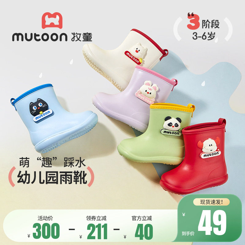牧童儿童雨鞋春秋男童宝宝夏季防水轻便红色小女孩卡通幼儿园雨靴