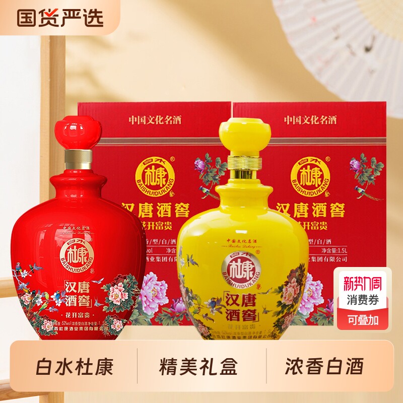 白水杜康52度浓香型白酒花开富贵大坛装1.5L礼盒送礼酿汉唐酒业