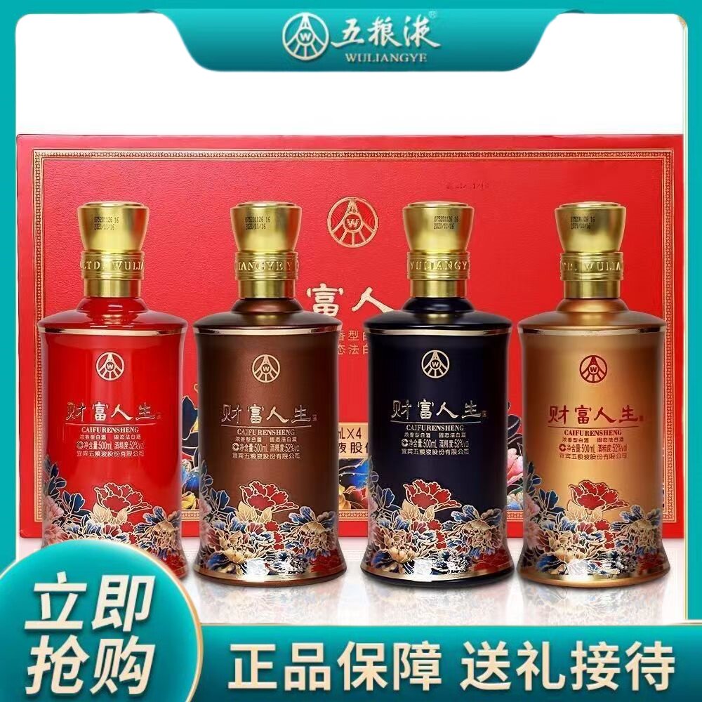 财富人生花开富贵系列52度浓香型白酒500ML*4瓶礼盒装下单送礼袋