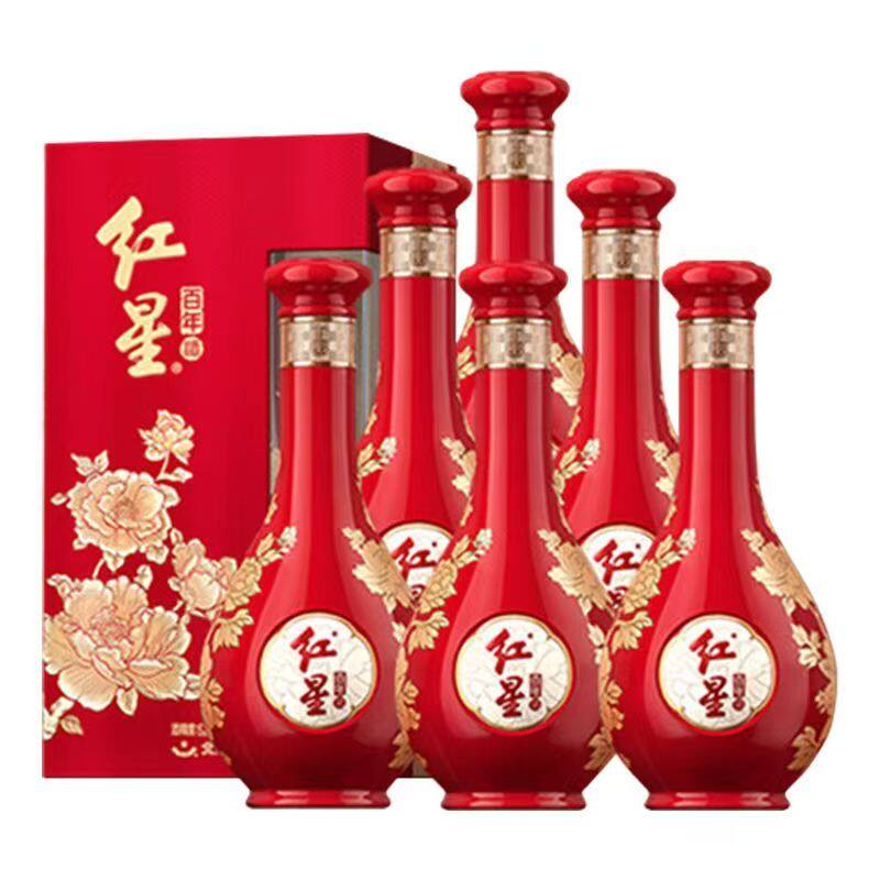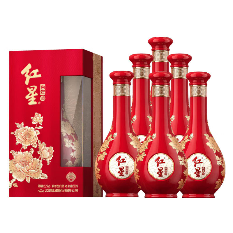 红星二锅头富贵花开百年酒52度500ml*6瓶清香型白酒节日送礼宴请