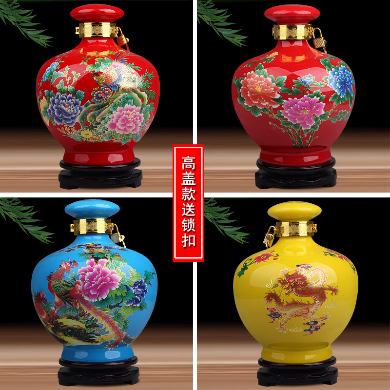 景德镇陶瓷空酒瓶 5斤密封白酒坛子富贵花开酒壶高档储酒罐酒具
