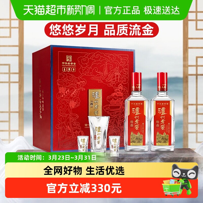 泸州老窖特曲老字号花开富贵礼盒浓香型高度白酒 52度 500mL*2瓶