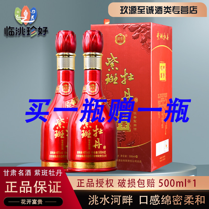 买一赠一甘肃名酒46度紫斑牡丹酒花开富贵纯粮特价特产白酒500ml