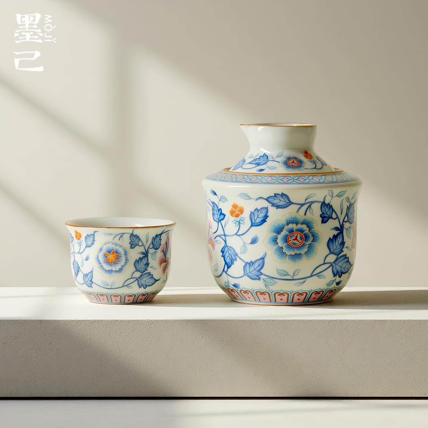 墨己汝窑温酒器花开富贵陶瓷温酒壶家用烫酒热酒壶黄酒白酒清酒具