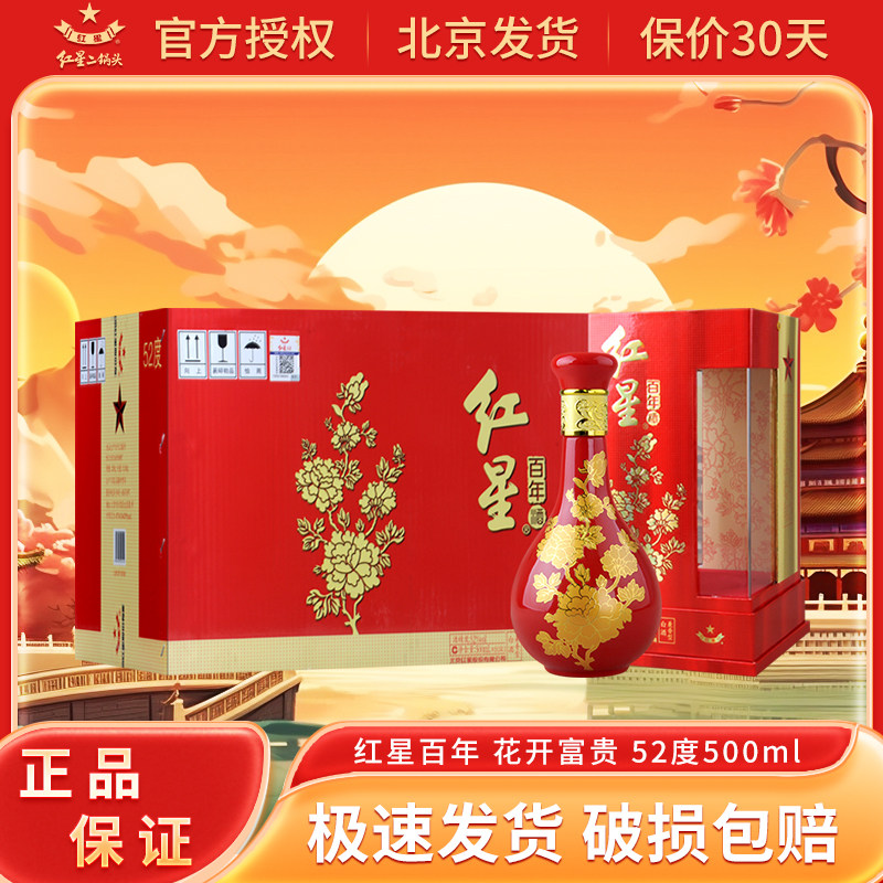 北京红星二锅头花开富贵百年52度500ml兼香型纯粮白酒节日送礼