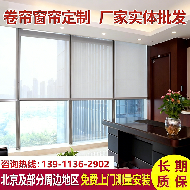 北京卷帘窗帘百叶定制办公室遮光遮阳隔热升降卷拉式电动窗帘定做