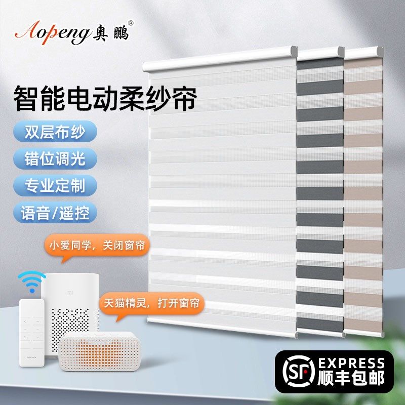 卡慕昂香格里拉帘柔纱帘电动百叶窗卷帘客厅办公室卧室遮光卷拉帘