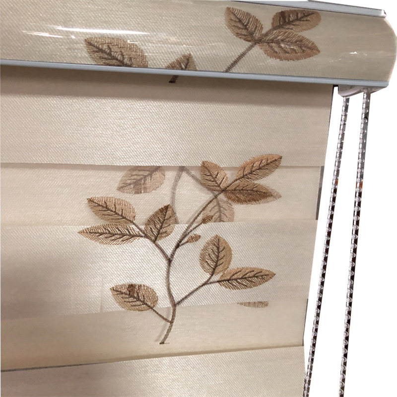 树叶绣花窗帘百叶窗卷帘客厅卧室定制成品办公室免打孔提花柔纱帘