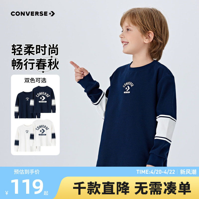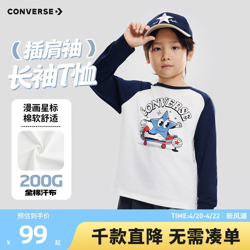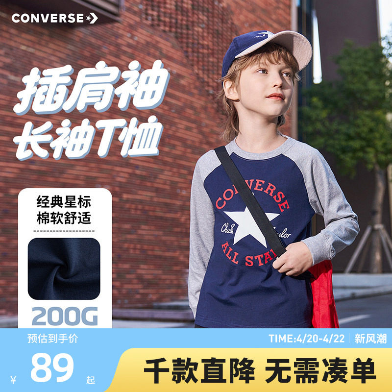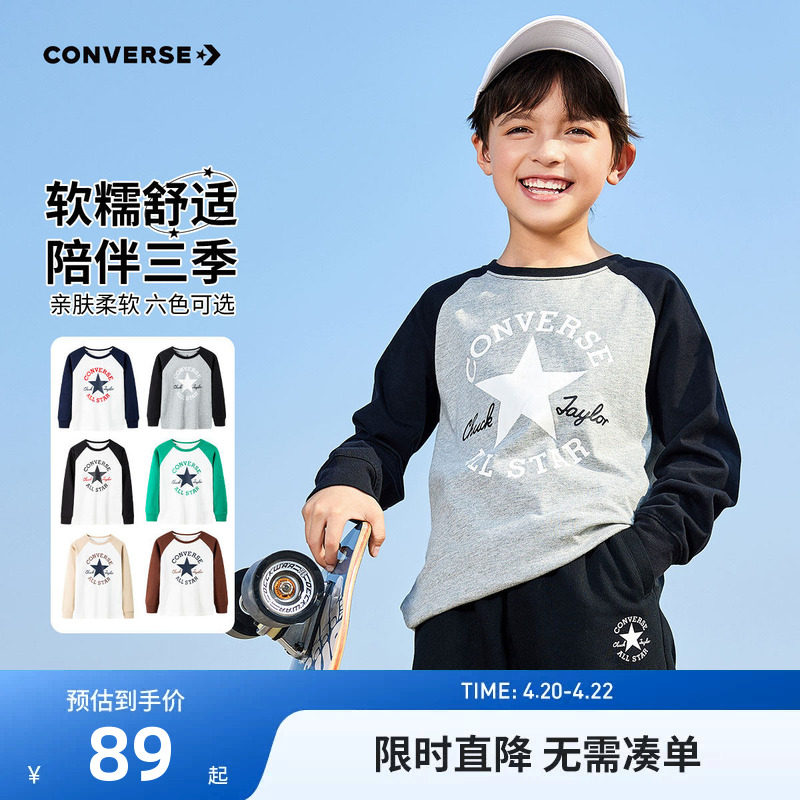 匡威童装男童长袖T恤2026春季新款新色插肩袖印花学院风百搭打底