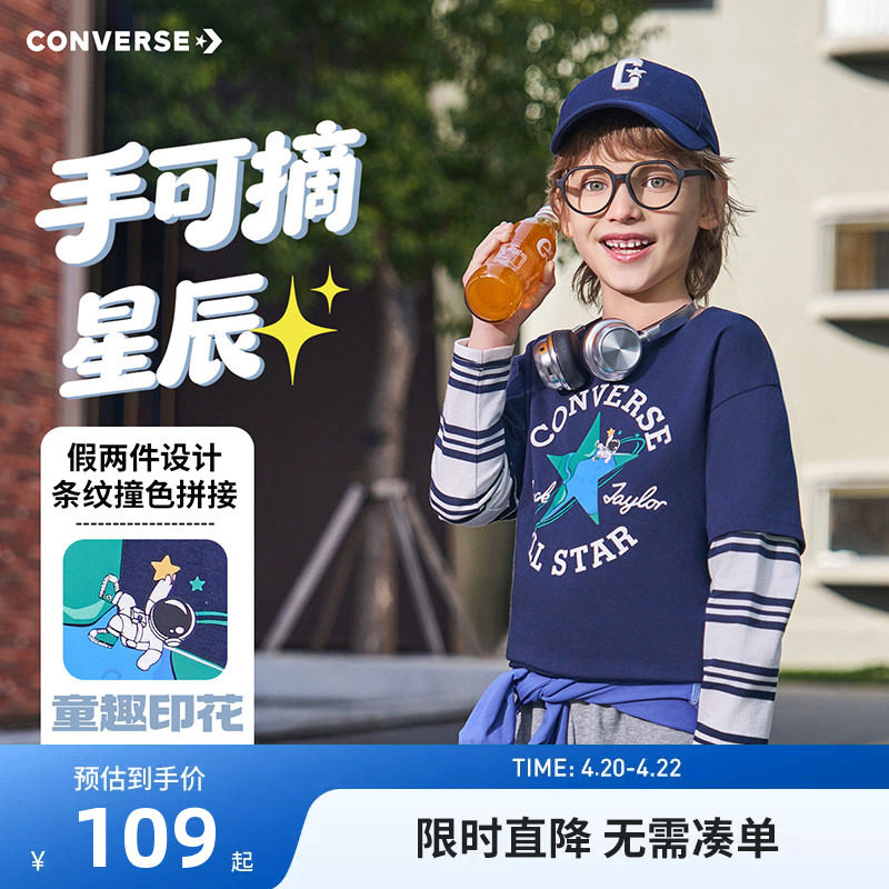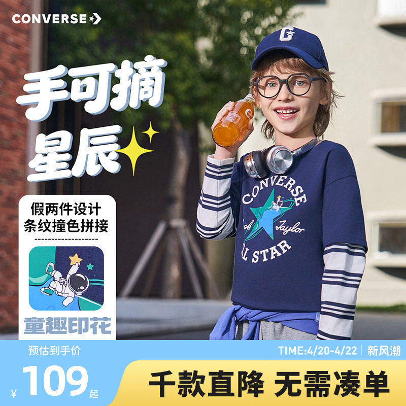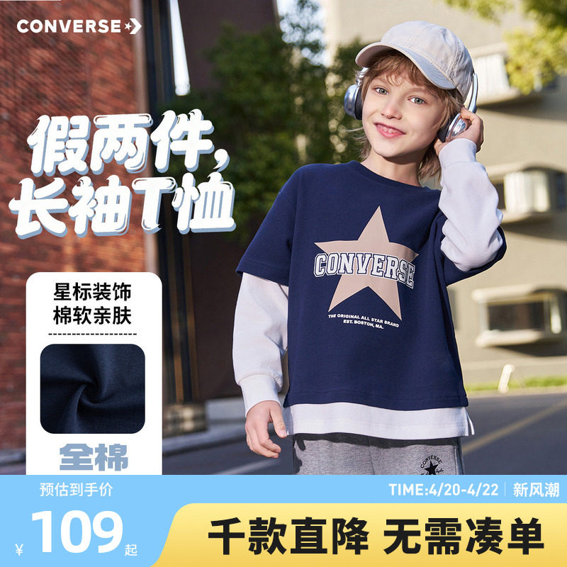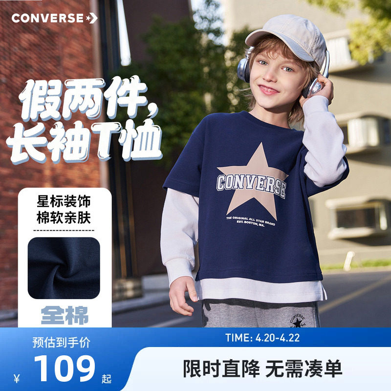 匡威童装儿童长袖T恤男童上衣假两件2026春季新款中大童春秋装潮