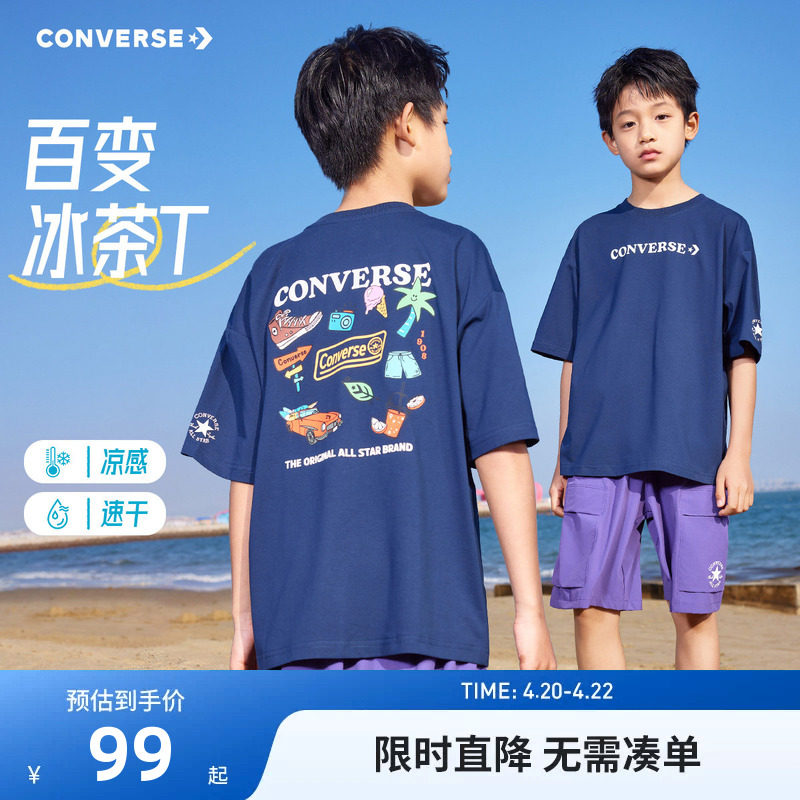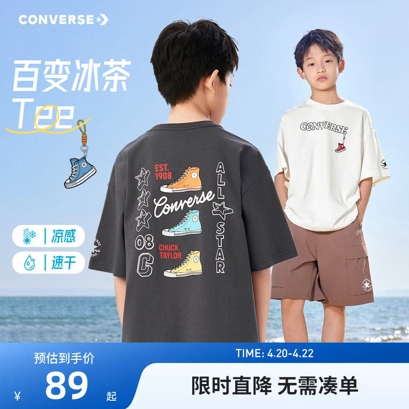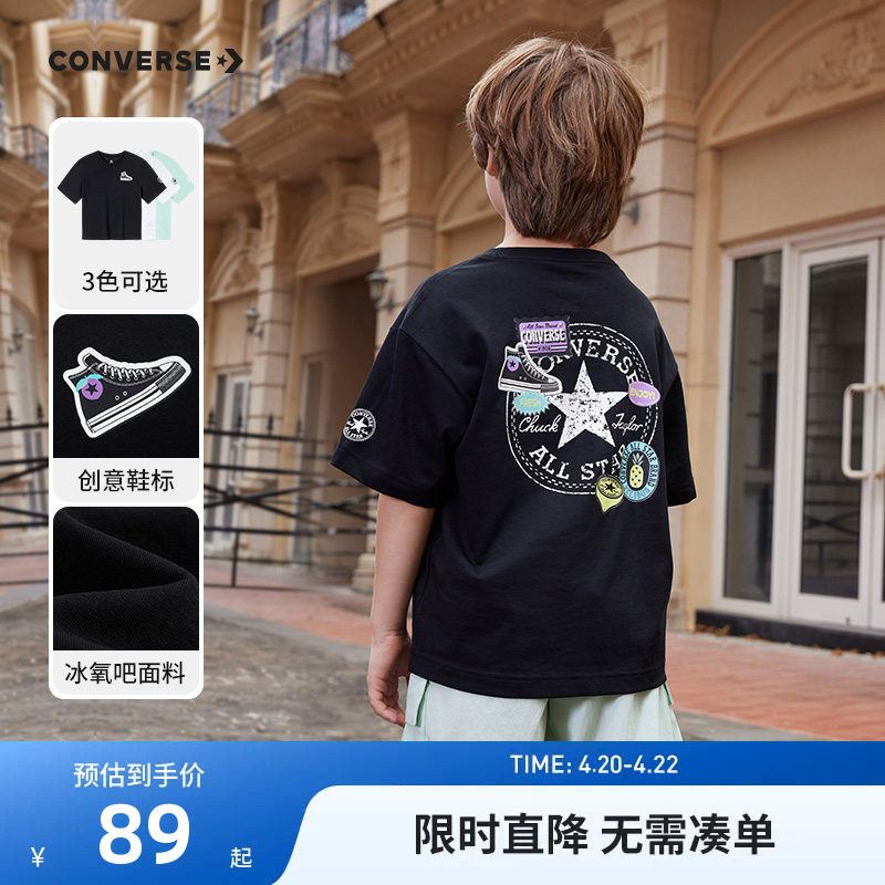 converse匡威儿童装男童短袖上衣青少年夏季中大童潮牌半袖T恤