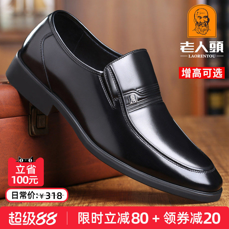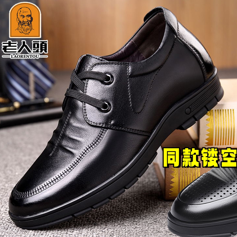 老人头皮鞋男真皮中年英伦商务正装皮鞋内增高6CM透气休闲爸爸鞋