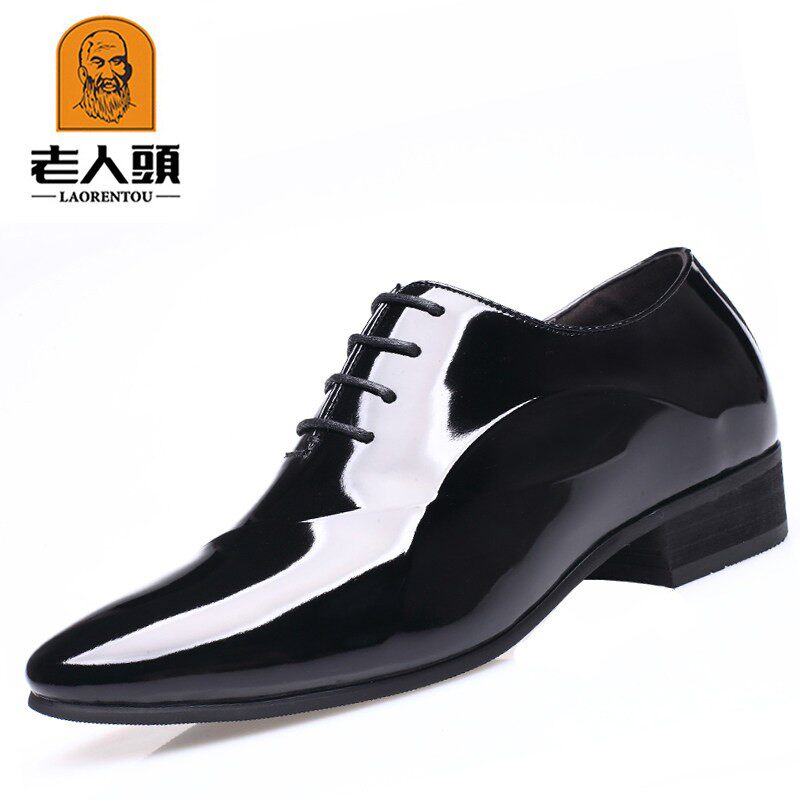 老人头男鞋春季男士商务内增高皮鞋6cm真皮透气漆皮亮皮结婚鞋8cm
