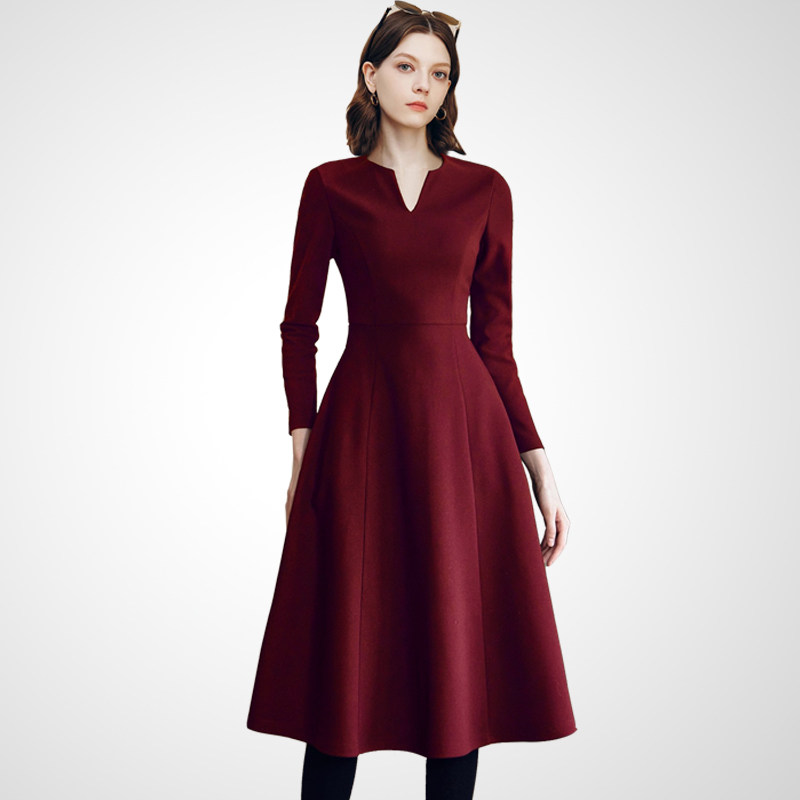 兰卡时尚复古名媛风V领收腰连衣裙2025秋冬新款中长气质显瘦伞裙