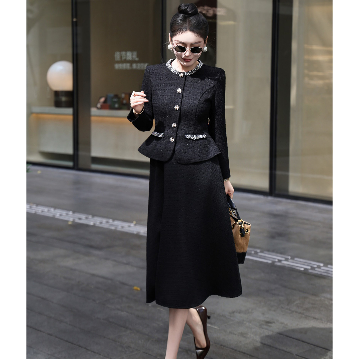 气质女装高级感名媛御姐小香风打底配大衣黑色秋冬修身显瘦连衣裙