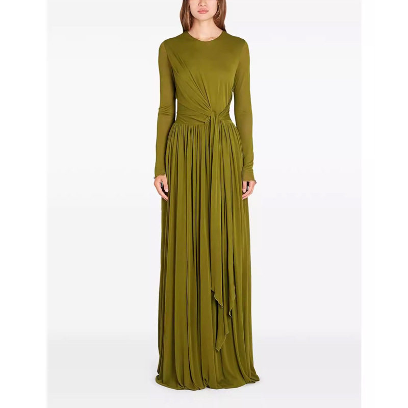 欧美女装名媛气质立领绑带连衣裙女2025秋季新款设计感超长礼服裙