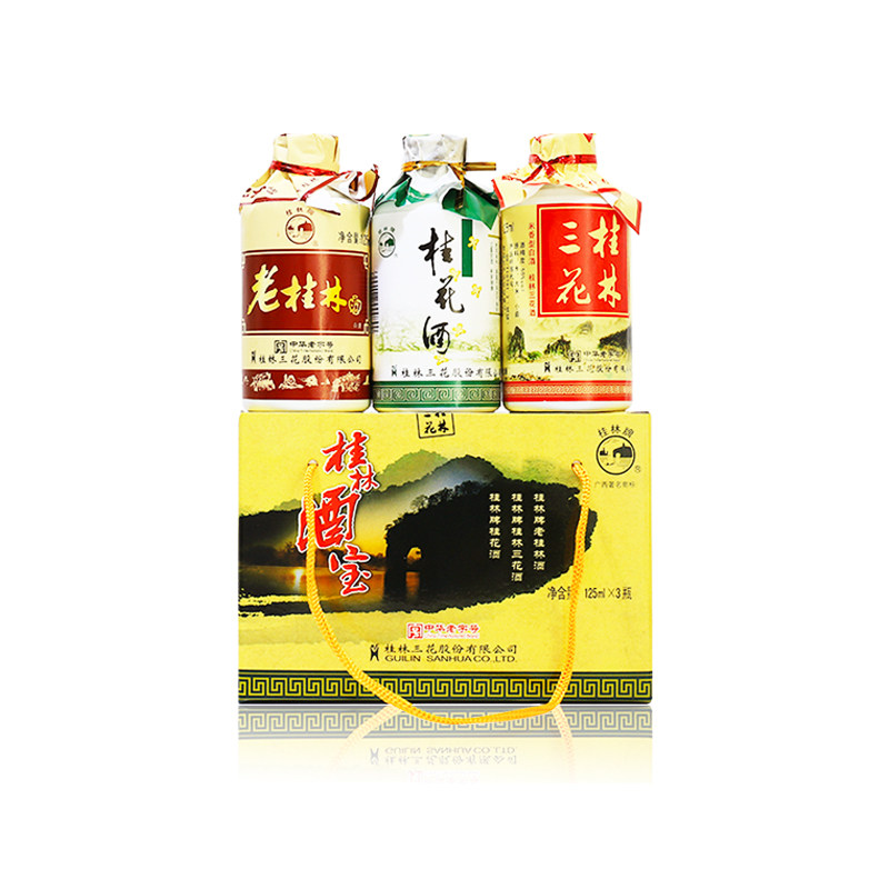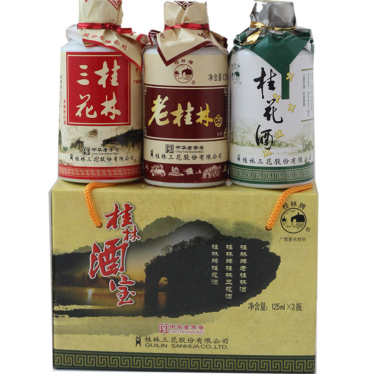 桂林酒宝礼盒桂林三花酒桂花国产白酒老桂林广西特产125ml*3瓶