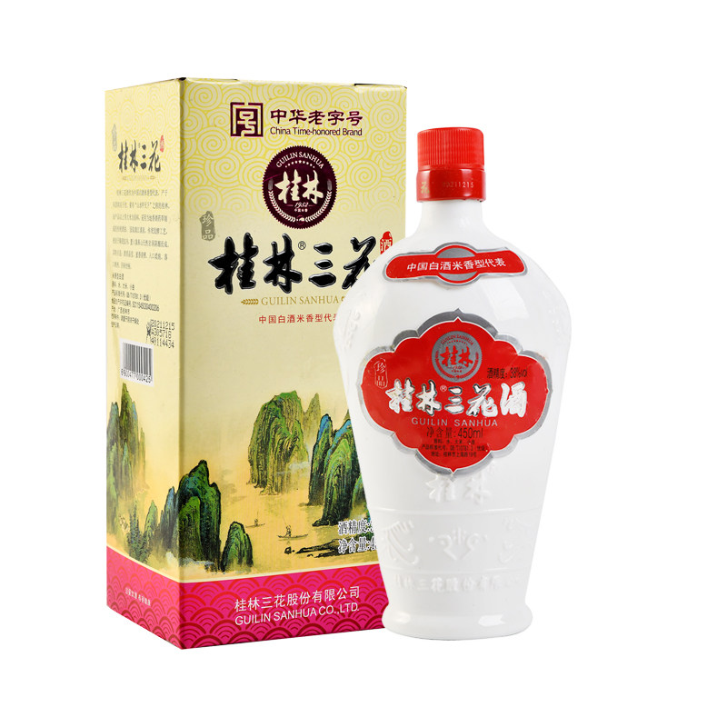 桂林三花酒芦笛岩陈酿老三花酒正品白瓷瓶53度450ml纯粮食酒白酒