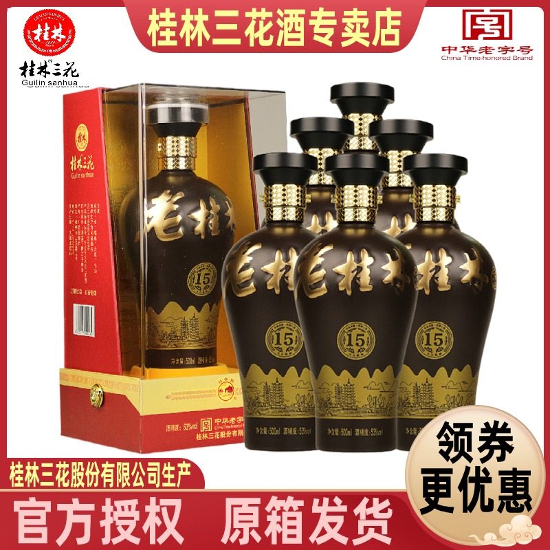 桂林三花老桂林15 古方陈酿53度500mL盒装米香型白酒广西特产包邮
