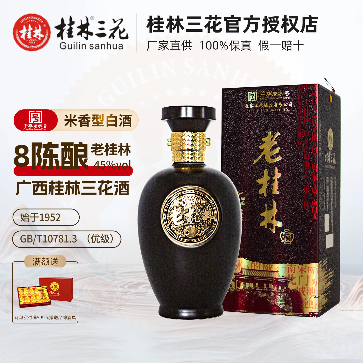 【厂家直销】桂林三花酒 老桂林8陈酿 45度500ml整箱广西特产白酒