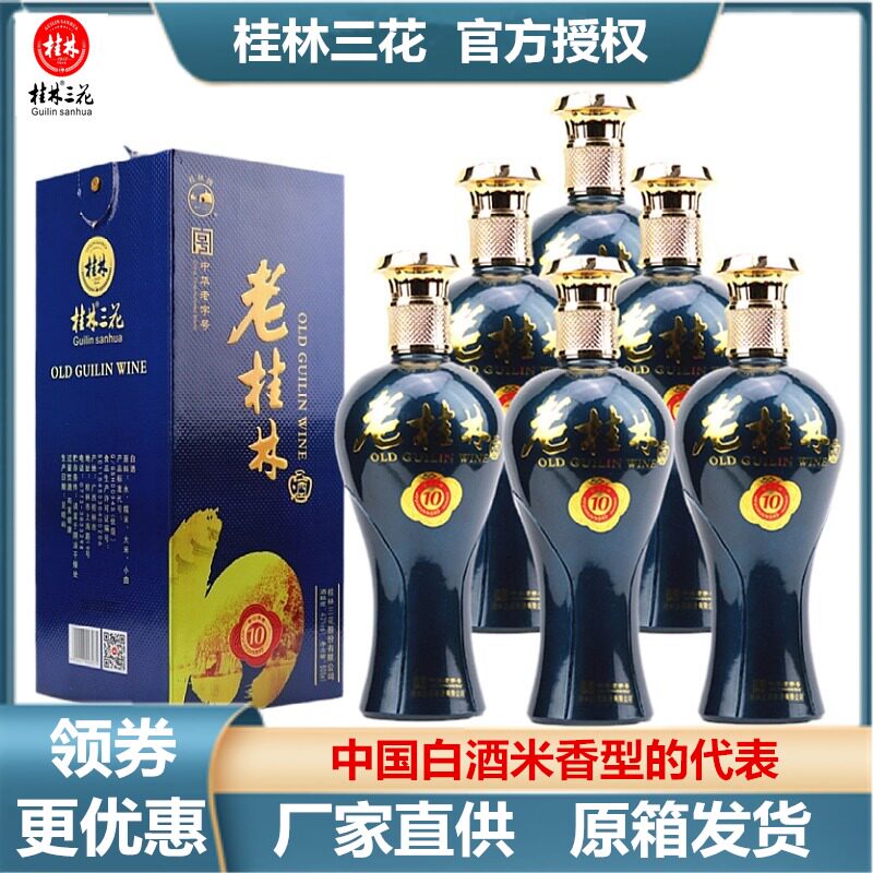老桂林10陈酿三花42度整箱500mlX6瓶装粮食白酒广西旅游特产包邮