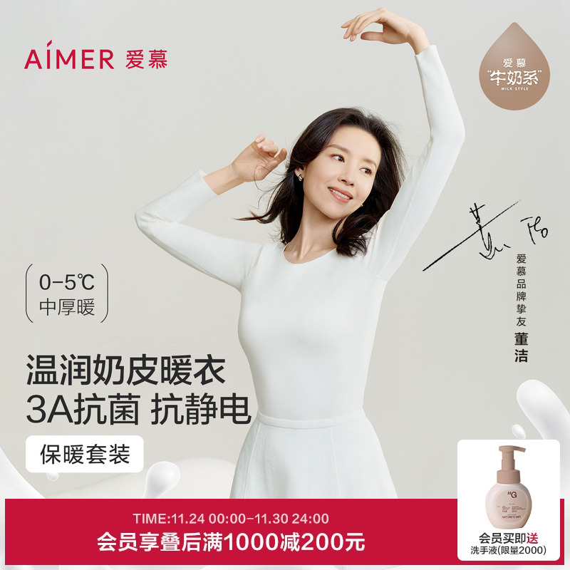 【董洁同款】爱慕牛奶系奶皮暖衣保暖内衣套装男女秋冬打底抗静电