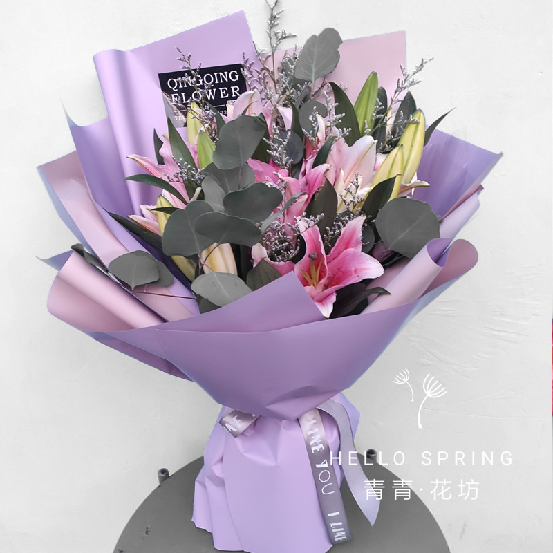 玫瑰百合鲜花花束速递同城配送女友闺蜜生日礼物青岛崂山区李沧区