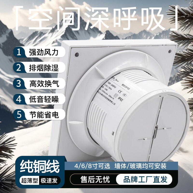 排气扇卫生间换气扇110墙壁窗式家用变频强力低噪厨房厕所抽风机