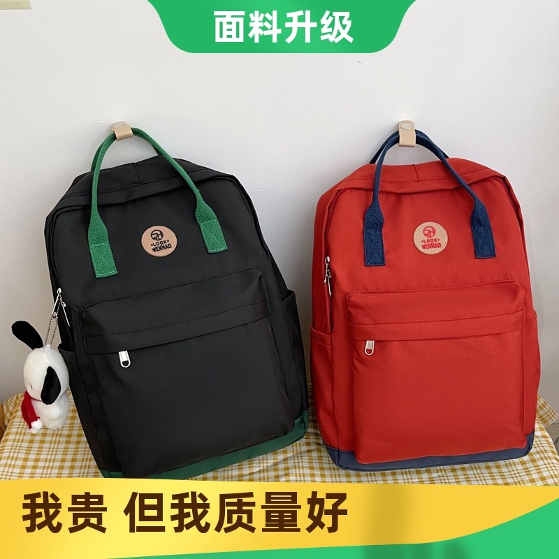 休闲撞色帆布双肩包女复古做旧街头潮流背包学生上课通勤包书包男