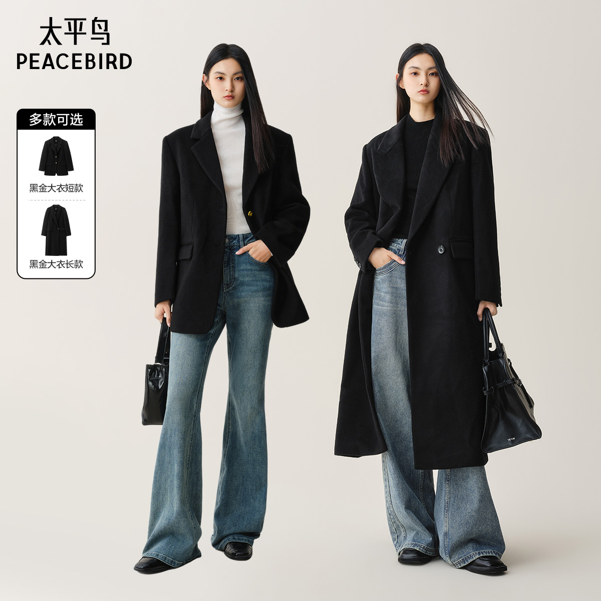 太平鸟甄毛系列黑金大衣3.0西装式羊毛大衣女25新时尚气质呢大衣