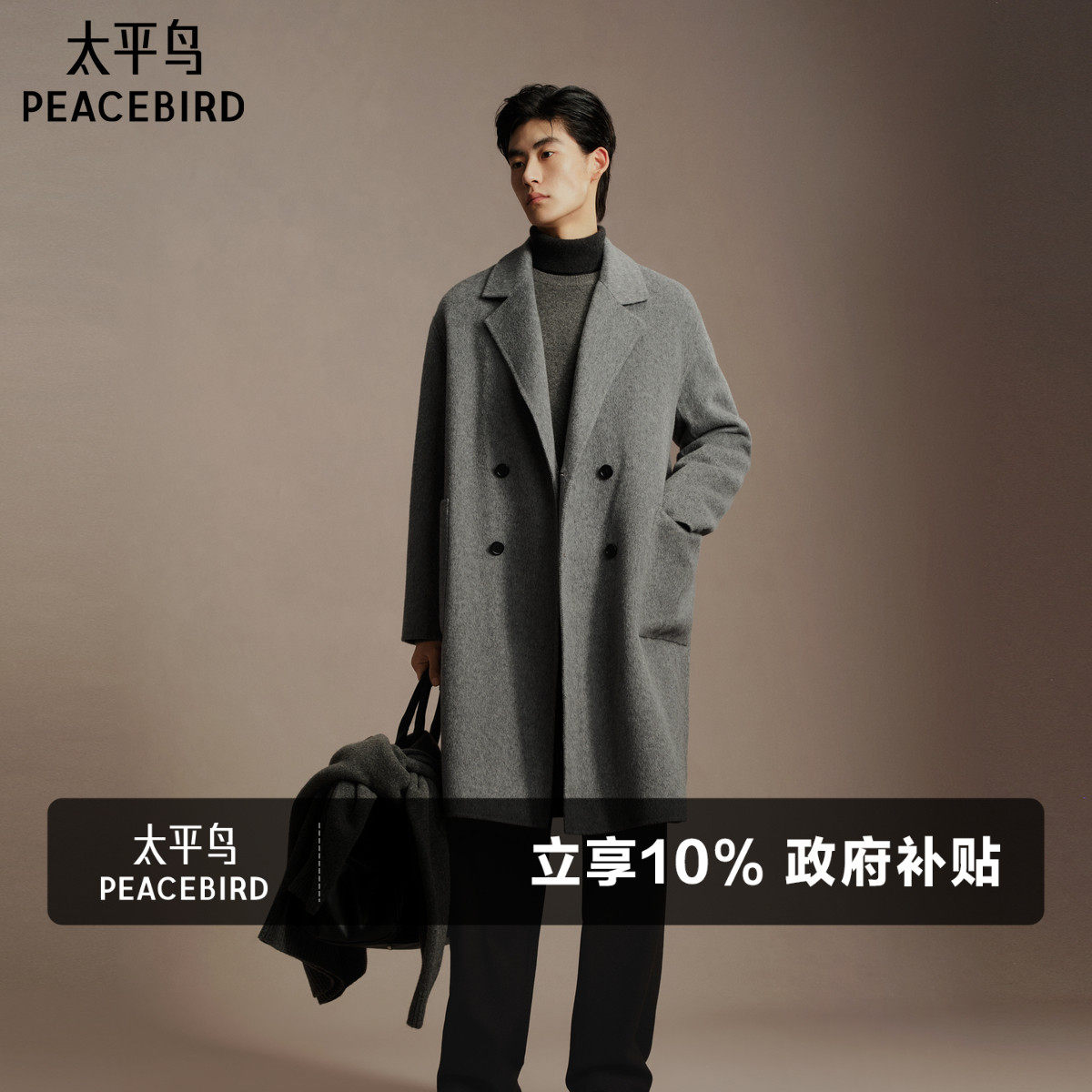 太平鸟甄绒系列经典传承大衣4.0山羊绒混纺大衣廓形双面呢25新款*