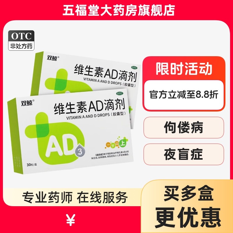 包邮】双鲸维生素AD滴剂30粒1岁以上婴幼儿补充维生素a维生素d药