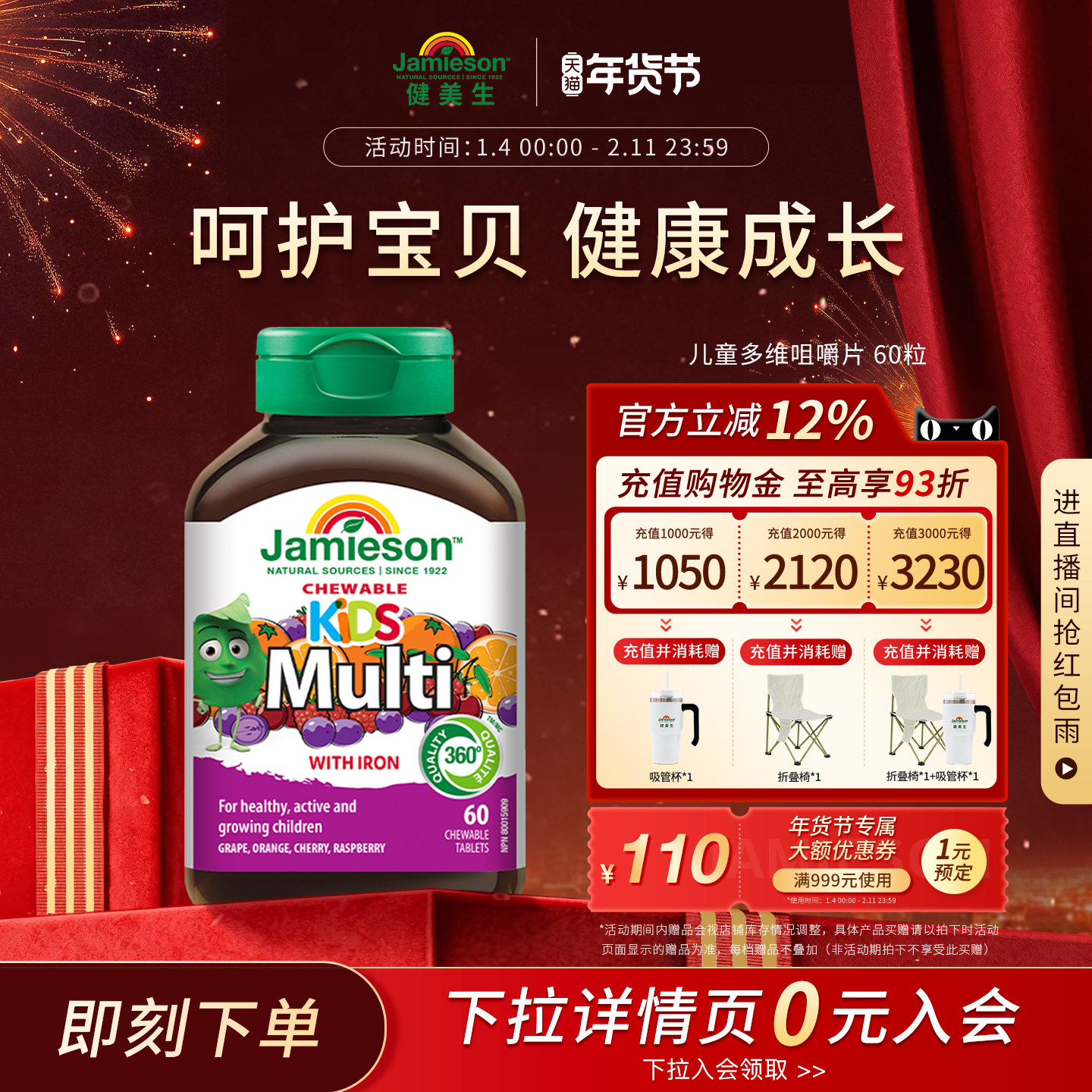 jamieson健美生复合维生素儿童矿物质多维维A维生素C咀嚼片60粒
