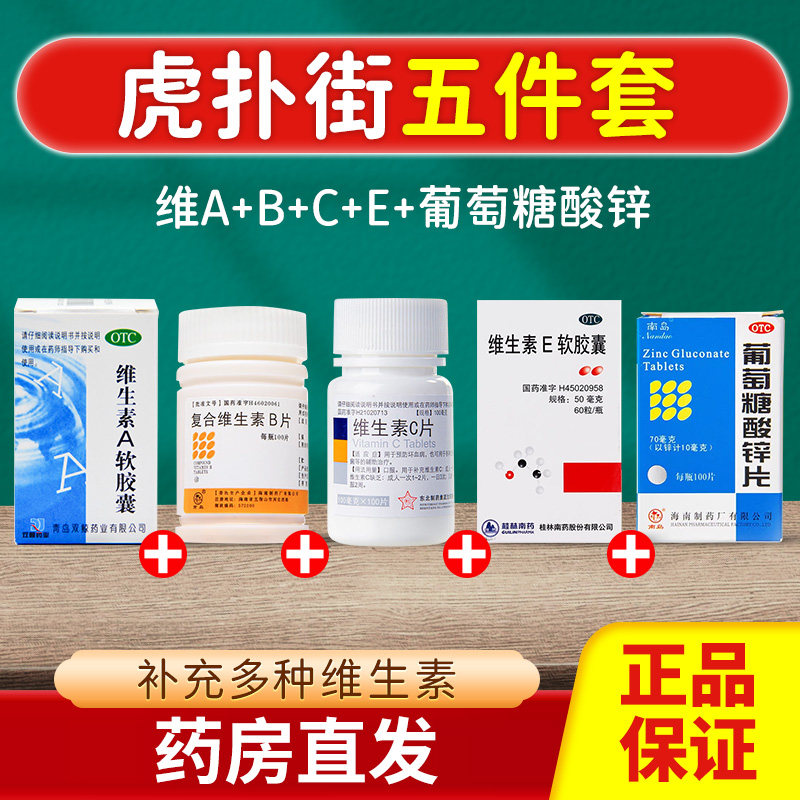 【虎扑街五件套】东北维生素c维a维b维e葡萄糖酸锌片全家桶正品sy