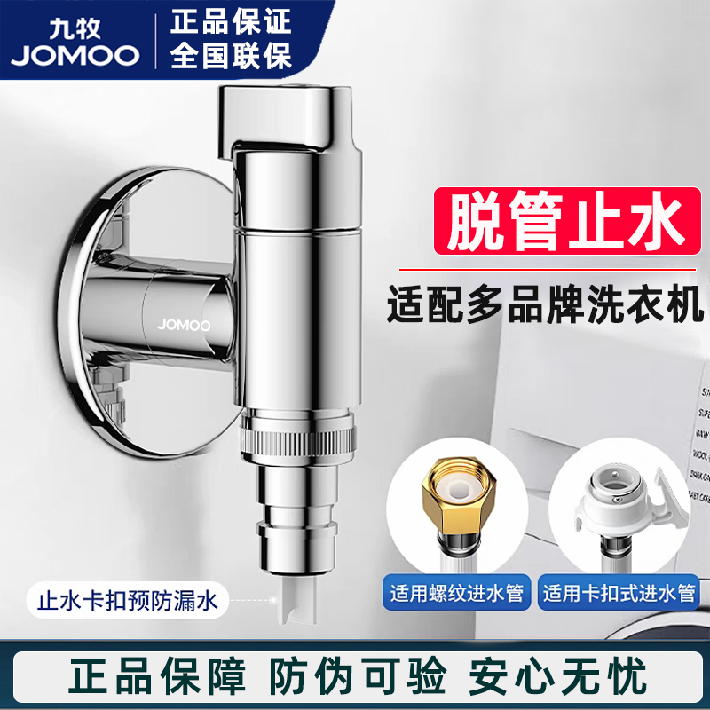 九牧卫浴304不锈钢洗衣机水龙头全自动角阀4分螺纹卡扣防脱落止水