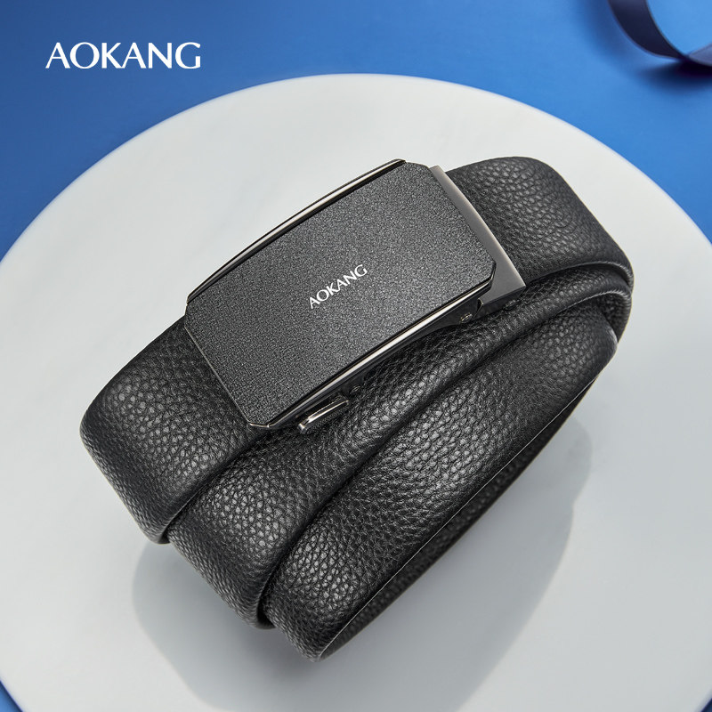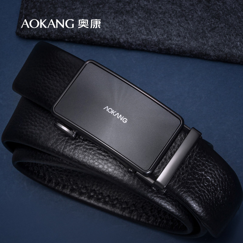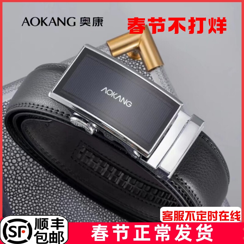 奥康皮带男士真皮自动扣腰带新款男式名牌裤带头层牛皮商务裤腰带