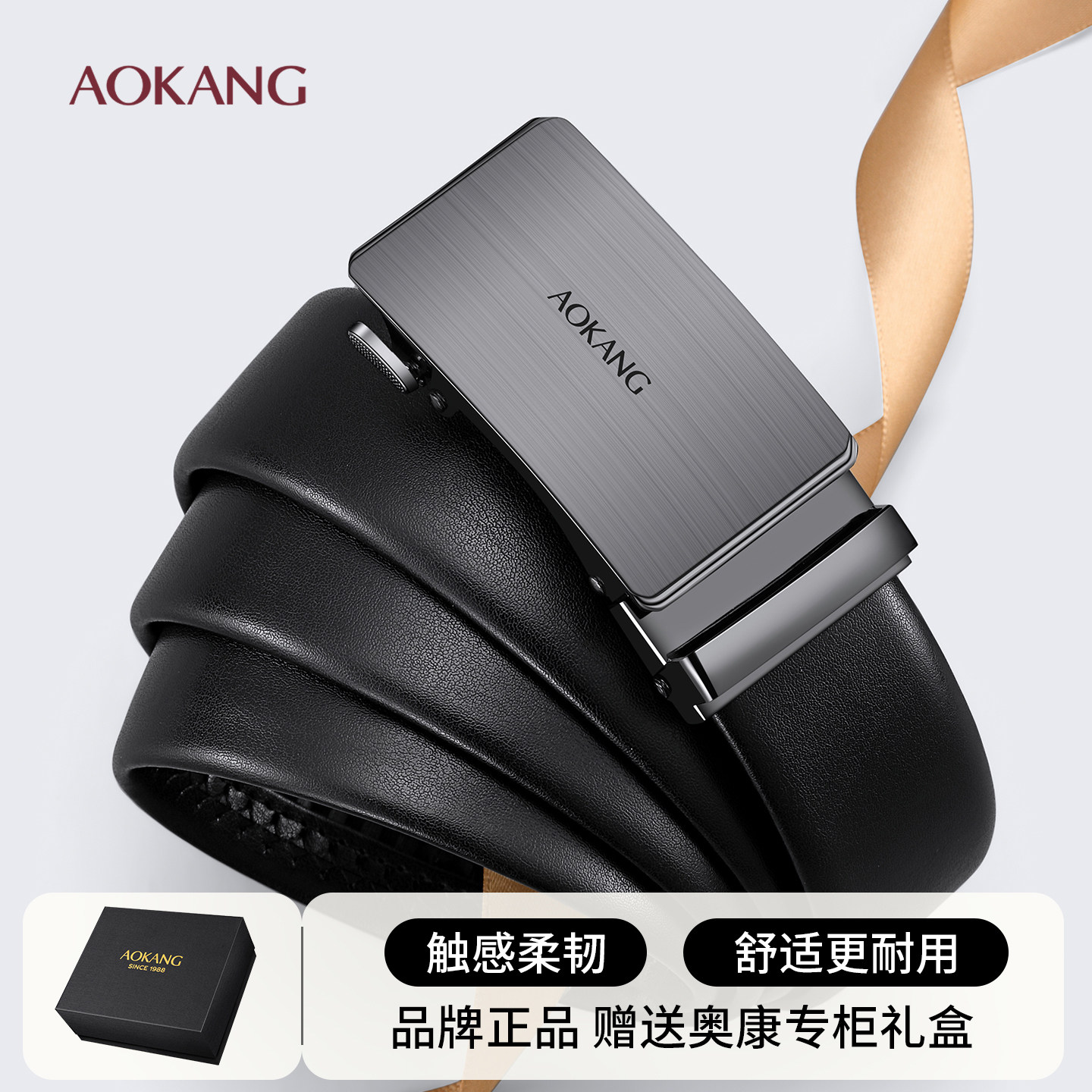 品牌奥康皮带自动扣卡槽真皮男士腰带商务时尚裤带纯牛皮礼盒包装
