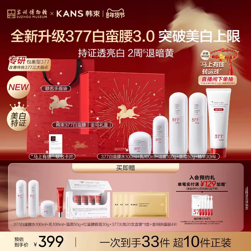 【田栩宁同款】韩束377白蛮腰美白淡斑礼盒护肤品去黄水乳套装