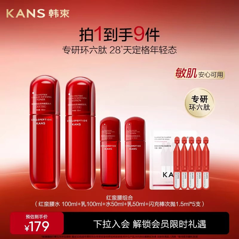 韩束红蛮腰水乳多肽胶原套装补水保湿紧致淡纹抗皱官方护肤品正品