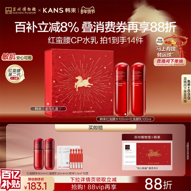 【淘宝秒杀】韩束红蛮腰水乳套装紧致抗皱淡纹提亮补水保湿护肤品