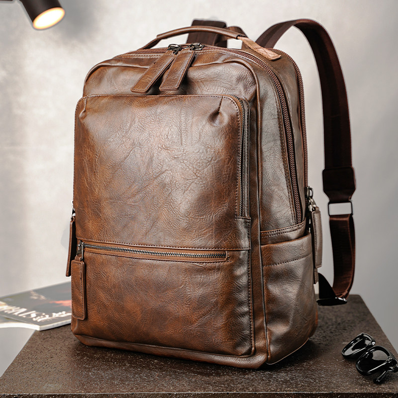 复古双肩包男通勤商务男士皮包皮质书包大容量女电脑旅行背包男款