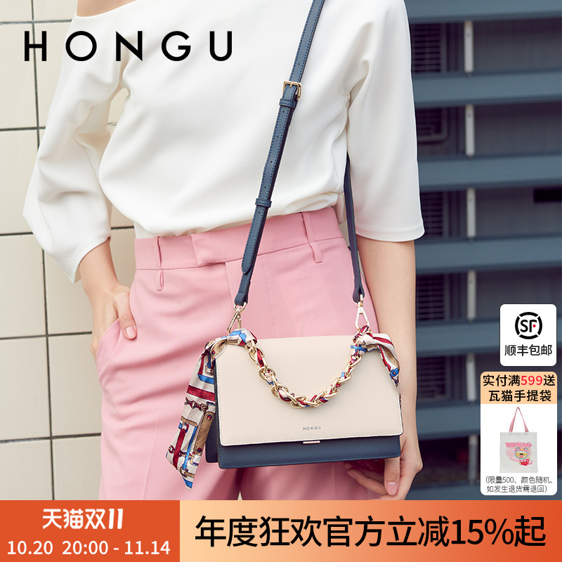 红谷包包气质女包牛皮斜挎包女士单肩包链条手提包时尚小方包小包