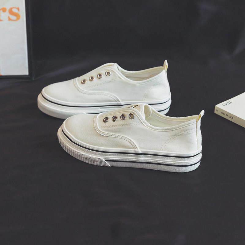 2022春夏百搭韩版小白鞋女白色帆布鞋平底休闲一脚蹬懒人鞋布鞋子
