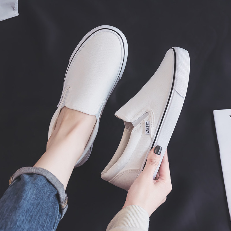 小白鞋女夏季一脚蹬平底鞋韩版懒人帆布鞋子夏天护士鞋白色布鞋女